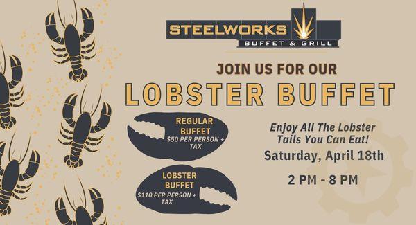 $50 Regular Buffet | $110 Lobster Buffet + tax